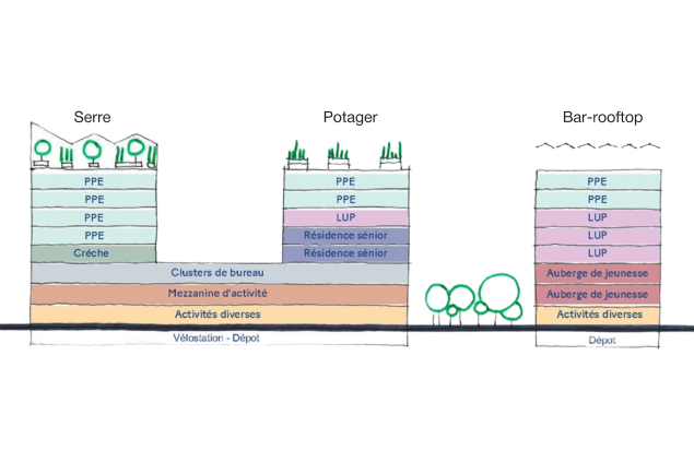 - mixité sociologique avec des logements de variés (dont des PPE et des logements d’utilité publique aux loyers contrôlés) et de différentes tailles.